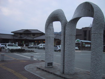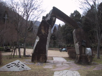 川沿いの小さなロードパークのようなところで、そばには例によって訳のわからないモニュメントが立てられている。