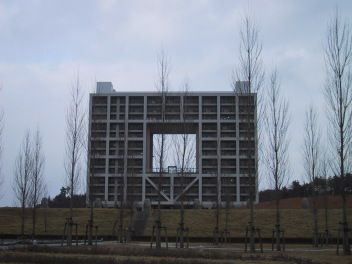 坂を上って三濃山トンネルを抜けると、そこは播磨科学公園都市で、景色が一変し、所々に企業の研究施設や姫工大付属高校の建物が点在している。