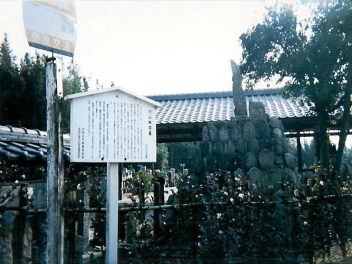 OPT2の向かいは墓場で、ふと見ると穴山梅雪の墓という看板があった。
