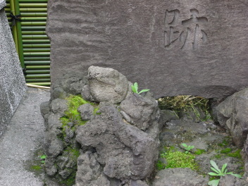 芭蕉庵は、幕末に消滅して正確な場所は判らないようですが、大正6年の大津波の後、この地から「芭蕉遺愛の石の蛙」が出土したところから、この地が庵の跡と定められて、地元の人々から芭蕉稲荷神社として祀られています。 |