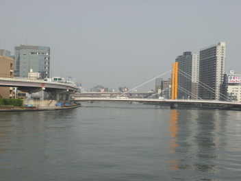 芭蕉庵史跡展望庭園から眺めた新大橋。