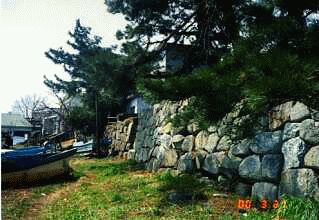 街道沿いには古い町並みが続いていた。家々の間の石段を降り浜辺に出てみると、浜辺には江戸時代に築かれた水害防止のための石積みが延々と続いている。港としての機能は既に失われており施設ももう残っていない。山がすぐそばまで迫っていて実に寒々とした風景が広がっているのが印象的だった。