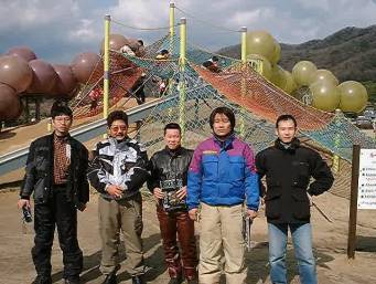 後さちQをチェックするために公園内に入る。葡萄の粒の数を数えるのは他の人に任せてその間しばらく皆で話をする。聞くと僕も含めて6人中5人がEメールアドレスを持っていた。インターネットの普及を実感する。YZF750SP氏はDDIのアンテナを設置している会社に勤めているそうで、持っていたH“でちゃんと入るか確認していた。ブラックバードに乗るUMI氏が持っていたデジカメで写真を摂ってくれた。ZZR1100氏は明石の人のせいか、カワサキの宣伝のような話をしていた。