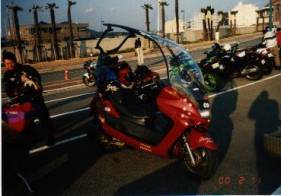 最終CPの和歌山マリーナシティには4時過ぎぐらいに着いた。PにはQラリーの人がたくさんいた。母上と奥さんと一緒にQラリーを回っているといいう有名なI氏もいる。I氏は母上と屋根つきのマジェスティで、奥さんはGS仕様のシェルパで初めて自走して参加されたそうだ。しばらく話をする。