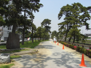 渋滞の国道4号を北上し、途中で国道をはずれ旧日光街道に入り、草加市内をしばらく行くと松並木が見えてきました。