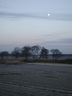 土手の上で待っていたけれど、地平線に雲が横たわっていて、残念。