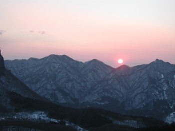 初日の出は秋ケ瀬でという恒例のお出かけ、霜が一面に降りていて、さむっい。