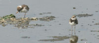 キアシシギのとっくみあいや、優雅なサギの群れなど楽しんで、前の干潟が狭くなってきた頃、そろそろと駐車場で支度していると、ハジロコチドリが到着との連絡あり、急いで戻る。
