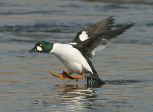 でも着水の滑稽な姿を見られて満足、おまけにホオジロガモもドタバタ水面を走ったり。