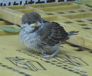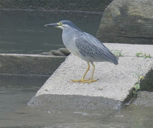 今日は、ササゴイ!と玄関の階段を下りると、スズメがしきりに鳴いている。どうやら巣立ち前のヒナが落ちたらしく、道路の側溝の蓋の上にうずくまっていた。危ないので拾って親から見えるところに置いて、お礼に写真を撮らせてもらって、出発。