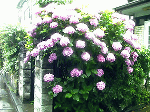 とあるおうちの玄関前にりっぱなアジサイとそれよりも高くそびえるサボテン、木に黄色の花が見事だ。デジカメで撮っているとおくさんが出てこられて、「あげましょうか?」と言ってくださる。決してねだったのではない。アジサイを2枝と、サボテンは棘がすごいので、袋にいれていただく。