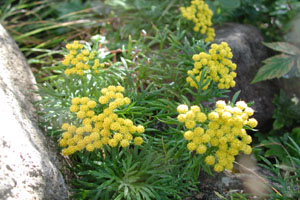 頂上にイワインチンが咲いていた。ちょっと嬉しい。 下山して朝食を済ませ、湯ノ丸高峰林道をごろごろと進む、でこぼこ道は植物が多く展望も開け、のんびり歩きたい道。 池の平着。 まず東篭ノ塔山に登る。(標高2227m) 森を抜けて視界が開け、岩場になるとイワインチンがあちこちに咲いていた、のとマツムシソウ。 (写真:イワインチン) |