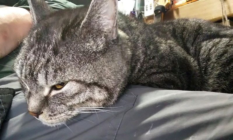 3匹目の保護猫が何故か僕に懐いててちょいちょい僕の膝の上で眠ってます。