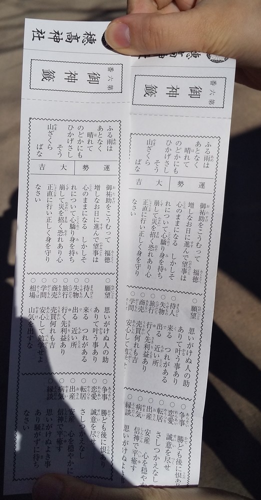 (実は、今日、1日に穂高神社へお参りしておみくじを引いたら初詣の時と同