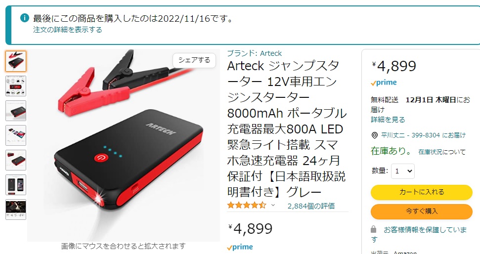 備えてジャンプスターターも用意しました。今は、モバイルバッテリーみたい