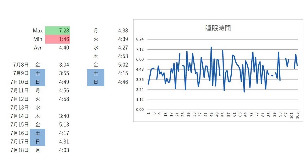 平均睡眠時間は、4時間40分、