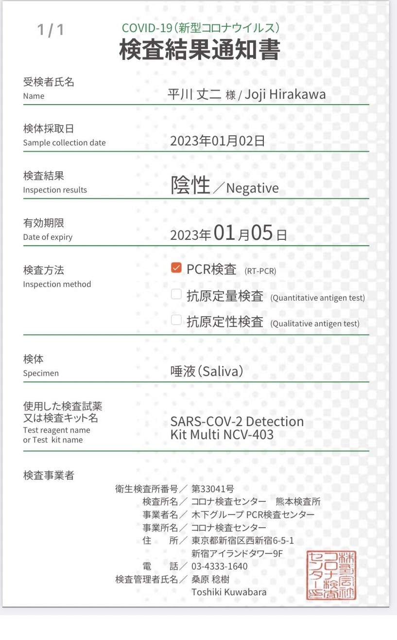 動しましたが、帰る日に街でPCR検査を受けて長野へ移動後結果を受けて帰宅