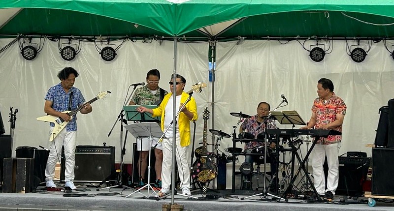 8月31日土曜のお昼、大雨の中、昭和歌謡バンドレインボースターZで30分程演
