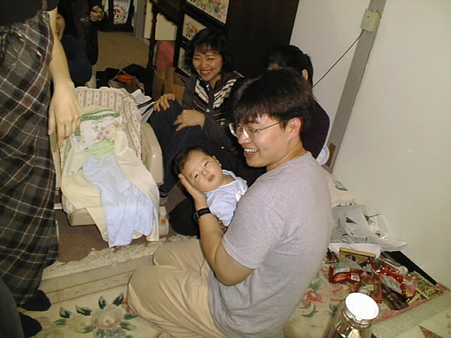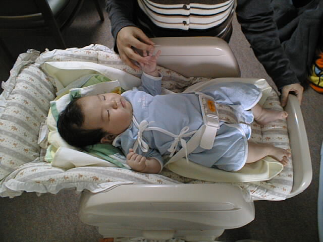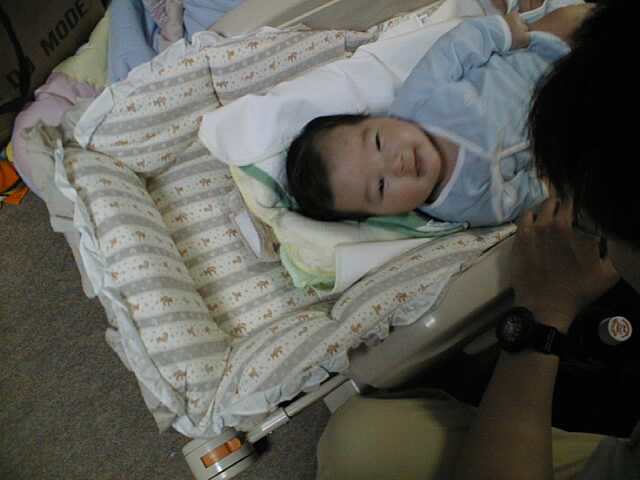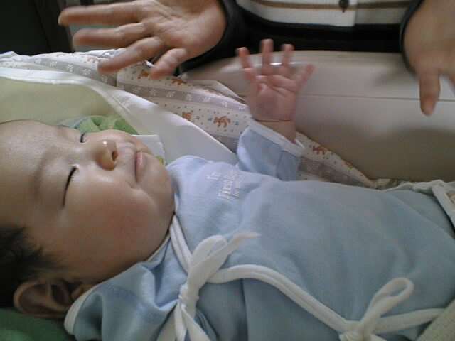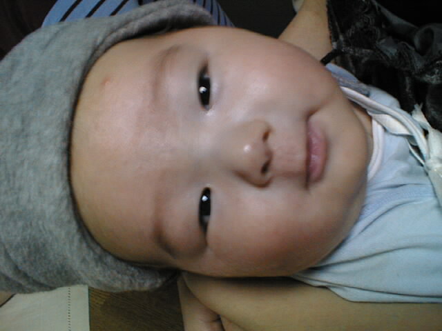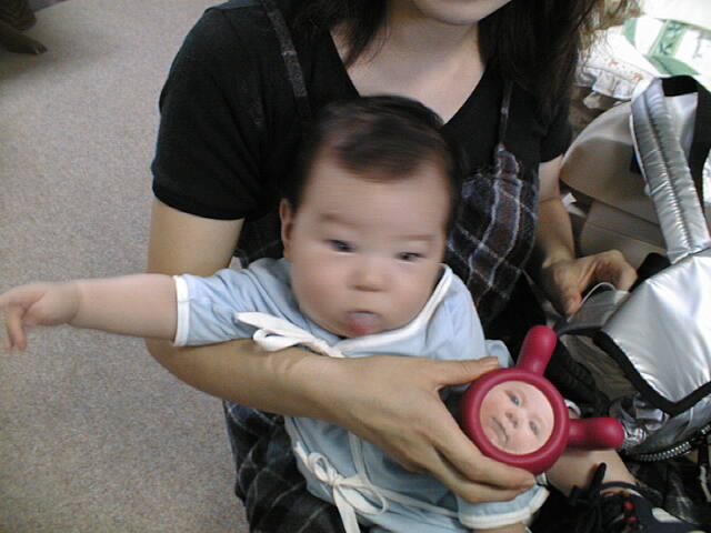 というわけで生後2ヶ月の若手ホープ、健志くんに初対面です。いやいや、なかなか根性のある子ですな。 人見知りはしないし、まえじいのごっつい顔見て泣くどころか喜んでるし(笑) 実はまえじいは、実際に赤ん坊に触るのって初めてだったりするんですよ。もちろん1歳以上だったら結構あるんだけど。 力加減が分からないものだから、おっかなびっくり、そぉっと指でほっぺた突っついてました。 まりぞうもだいぶ母親らしさが板についてきていて、女性ってすごいと改めて思いましたよ。「母は強し」ってやつだねぇ どんなにあやしてみても、やっぱり母親にはかないませんね。脱帽。 今回のお写真の主役は、もちろん「健志くん」です。ちょっと仮想的親バカ気分を堪能してみました。 お写真のほうは下の小さな絵をクリックすれば、大きな写真を見られます。ちょっとデータが大きいので、ちょっと時間がかかります。ご了承下さい。 そうそう、よろしければ「らぶらぶビデオ鑑賞会」のページもご覧ください。 |