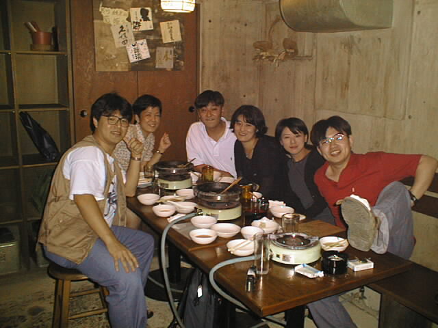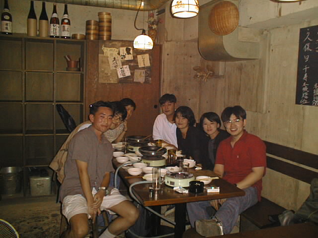 はてさて、今回のお写真は、9月19日に集合した7人の侍…じゃなくて、7人のじーさんばー…お嬢さんの 「そろそろ秋だねぇ、んじゃま、モツ鍋でも食ってみるかいご飯会」(勝手にネーミング)でのお写真で〜す。 夏前の現役カレッジの集まりとは対照的ですねぇ。話の内容に年輪を感じましたよ(笑) 毒舌が唸る!寒いギャグが炸裂する!「ここだけの話」が皆に知られている! ガン○ムびいむ! いやいや、「いただきます」よりアツいトークショーでした(違う) ところで流しそうめんについては、目下回答待ちですよん(笑) さてさて写真ですが、まあ数は少ないですけどご覧くだされ。 下の小さな写真をクリックすると、大きい画像を見ることができます。 640×480なので、ちょい大きめのサイズです。モデムの遅い方、すいません。 |