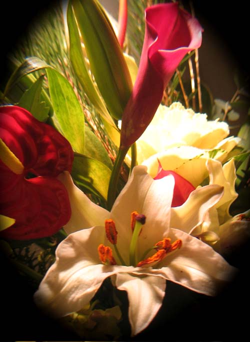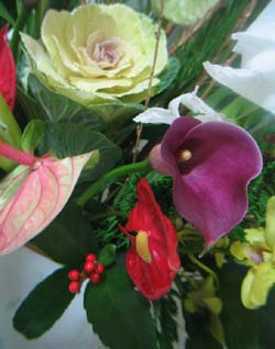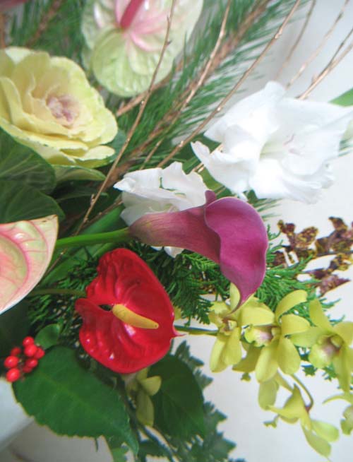 カ−ラ− アンスリウム 葉牡丹の アップ |