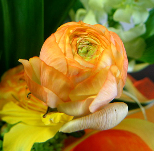 ← チューリップと スイトピーの間は青い麦の穂 若い麦の穂が生き生きした表情を見せてくれて力強い → 大好きなラナンキュウラス。 |