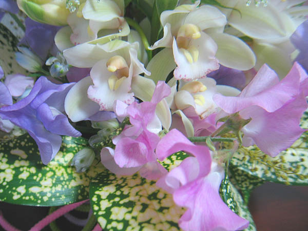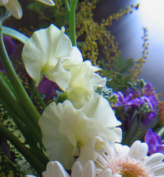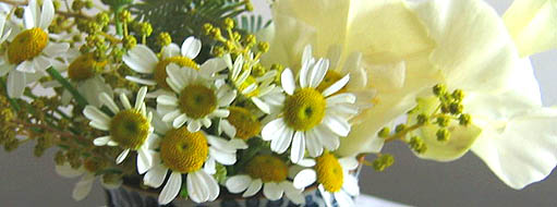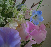 愛らしいマトリカリアとひらひらのスイトピー