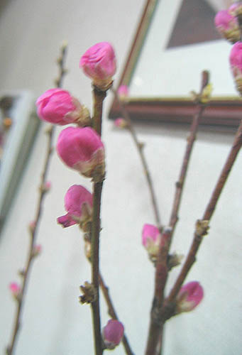 桃はアレンジした時点では、まだ愛らしい小さな蕾でした。