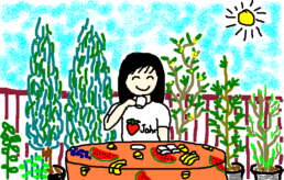 種を植えて、芽が出て、蔓が伸びて・・・・。たくさんのお友達におすそ分けの約束をしました。さて、その顛末は・・・。 |