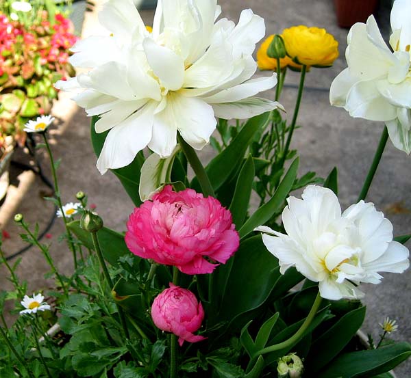 チューリップとラナンキュウラス、アネモネ、アリッサム。