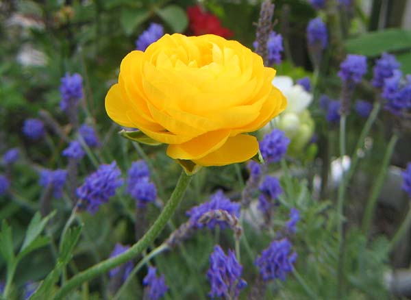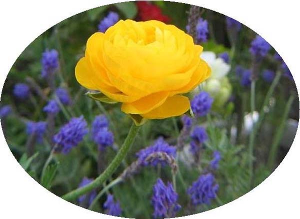 やわらかな花姿が大好きなラナンキュウラス。花びらが巻くように咲く姿はなんとも優しい佇まいです。ラベンダーもいい薫りです。