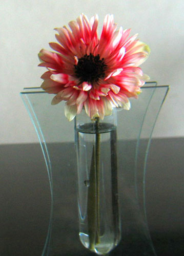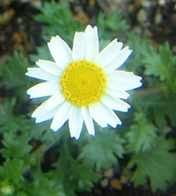 2005年3月中旬 こぼれ種から咲いてくれたポットマム 親指ほどの小さな花です。 |