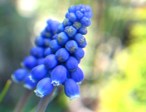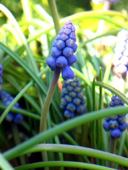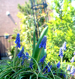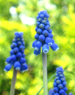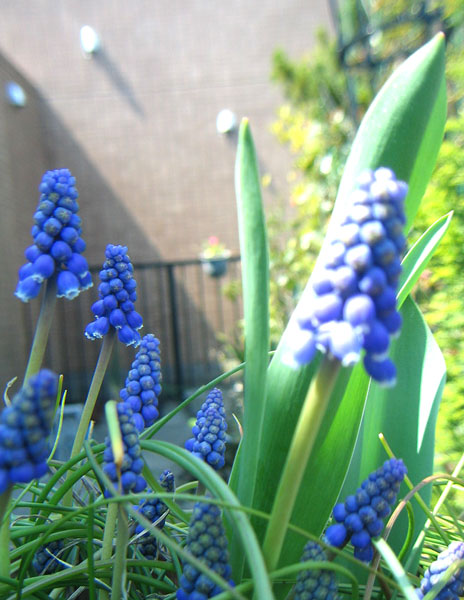 植えっぱなしのムスカリが 咲いてくれました。 はじめは つくしのような 三角にとがった花姿が ある日突然、土の中から 出てきます。 それも、 ノビルのような 葉っぱの中から。 暖かい陽をあびて つくしのようなとんがりは ぐっと背を伸ばして まあるい小さな蕾の房に なって やがてスズランのような 花姿になります。 |