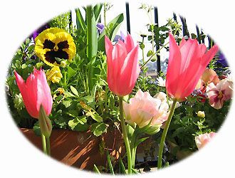 | ↑ 後方に見えるのは パンジーとチューリップ |