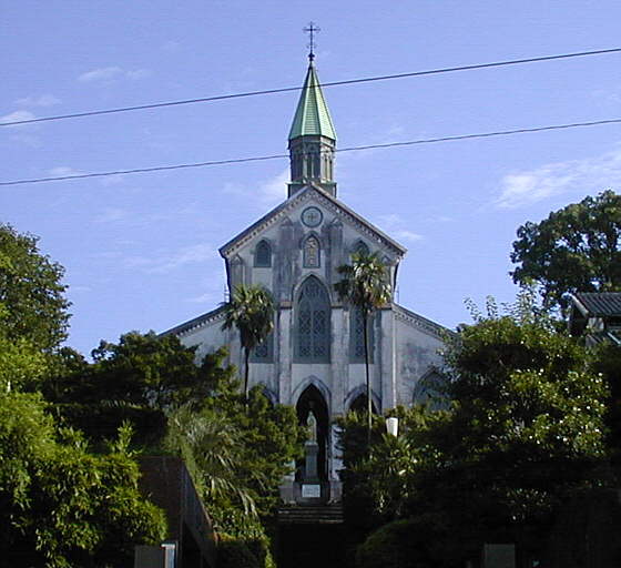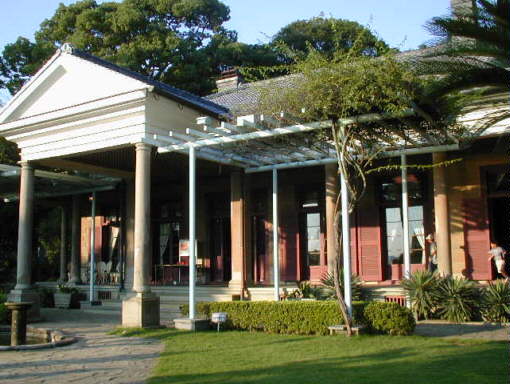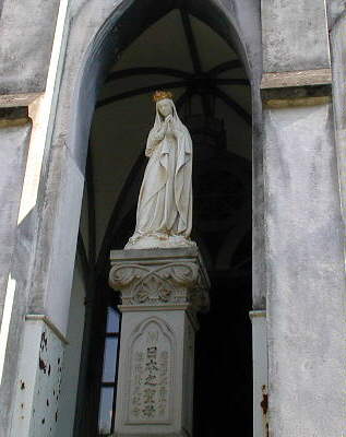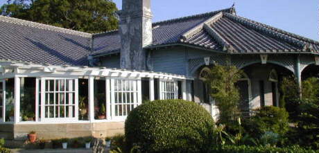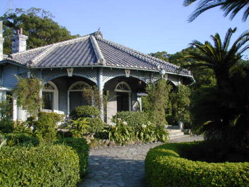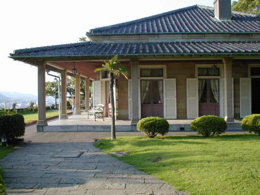 坂を上っていくと、大浦天主堂が見えてきました。入口にはマリア像がありました。大浦天主堂の裏を抜けるとグラバー園です。まず、自由亭という喫茶店があって、西洋料理発祥の地のようです。私は行きたかったのですが、店が禁煙だったので主人が嫌がって行きませんでした。