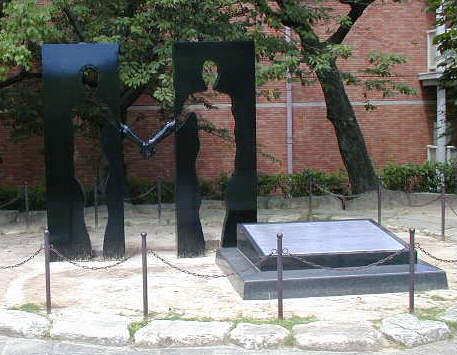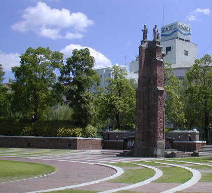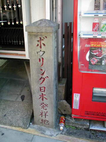チャンポンを食べたあと、坂を上ってグラバー園へ出かけました。途中、ボーリング発祥の地という記念碑が自動販売機の横にひっそりと建っていました。