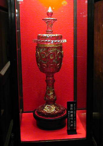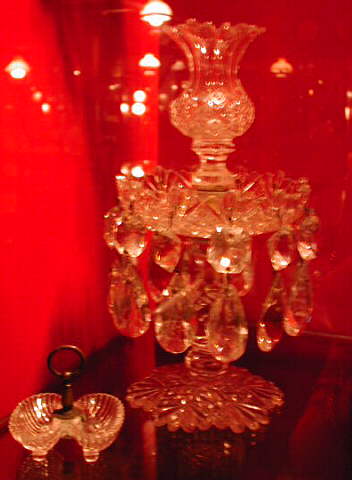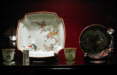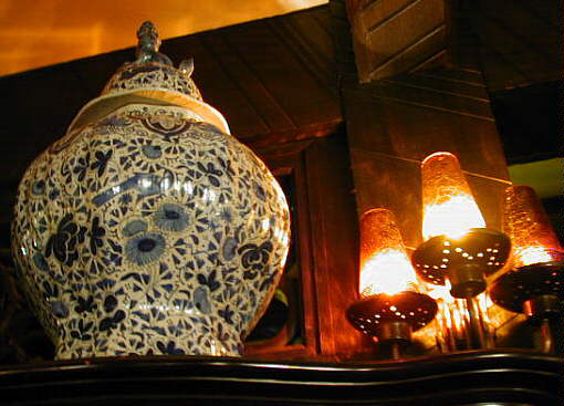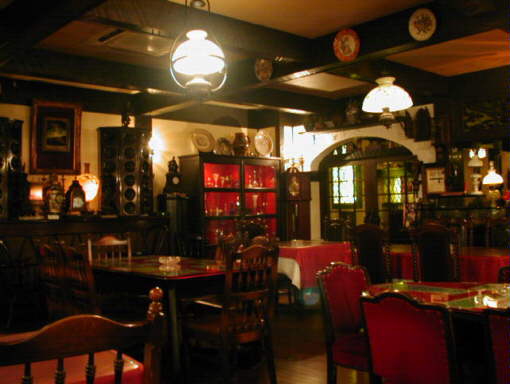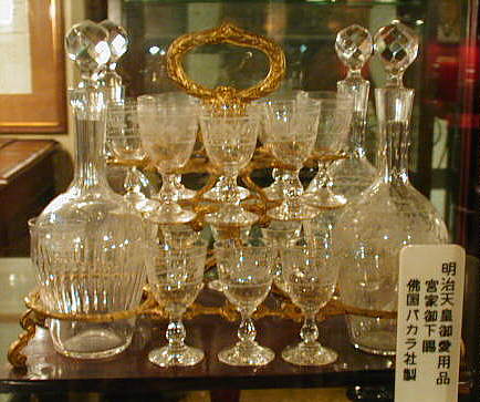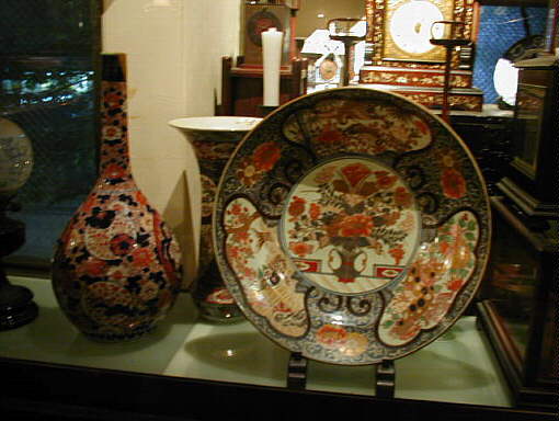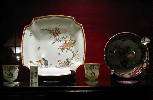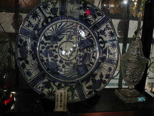 それから、銀嶺というレストランに行きました。場所は、思案橋という電停から歩いて3分くらいのところです。中にたくさんの陶器やグラス、ランプなど所狭しと置かれています。そのどれもが本物の美術品で、ここはまるで博物館のようです。主人は、銀嶺のコースターをもらってきたようです。中が暗くてあまりきれいに写っていませんが、お皿などを紹介します。