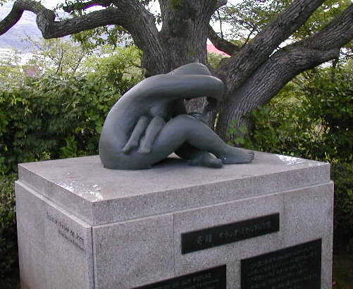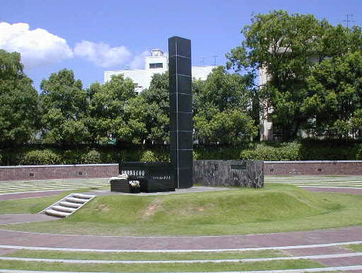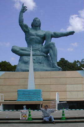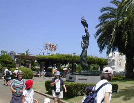 まず、原爆投下地点へ行ってみました。1945年8月9日午前11時2分にこの記念碑の上空500mで原爆が爆発したそうです。すぐ近くにある浦上天主堂の壁もありました。平和公園は、9日の式典の準備中でした。有名な平和像です。