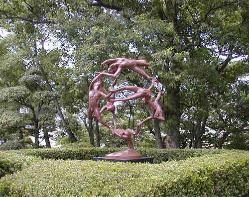 平和公園には、いろいろなオブジェが置いてありましたので、紹介します。No.4の注目は、文明堂のカステラではなく、掲げた手の上にとまっている鳩です。