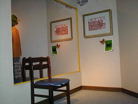 一番はずれにオルト邸がありました。大きな蓄音機が置いてありました。台所では、主人が料理を作っているふりをしています。室内にはたくさんのお皿が飾られていました。