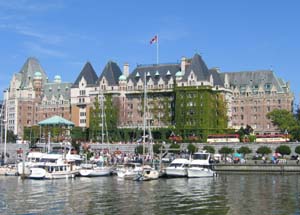 3日目、バンクーバーからビクトリアに移動しました。コーチバスで3時間半かかりました。まず、フェリー乗り場に向かい、フェリーの旅は1時間30分ほど、再びバスに乗りこんでビクトリアに到着しました。この日船上は風が冷たくて震えるほどでしたが、青い海原が悠然とたゆたい、その上をカモメが飛び交ったり、白い船が進んでいくのを眺めていると気持ちがゆったりとしてきました。ビクトリアはブリティッシュコロンビア州の州都で、バンクーバーが近代的な都市なのに比べ、ビクトリアは古いヨーロッパを偲ばせる美しい庭園都市です。「カナダで一番人に優しい町」と言われ、カナダの人は年老いたらビクトリアで暮らすのが夢の一つだそうです。今ではイギリス本国でも廃れてしまったアフタヌーンティーを楽しむ習慣も、庭園を花で美しく飾る英国気質も残っています。