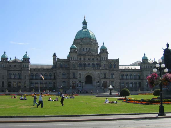 ![]() | ロマネスク様式を応用した州議事堂です。1916年完成です。正面にはビクトリア女王の銅像があり、青銅のドームの頂の像はジョージ・バンクーバー(バンクーバー島の発見者)です。 |