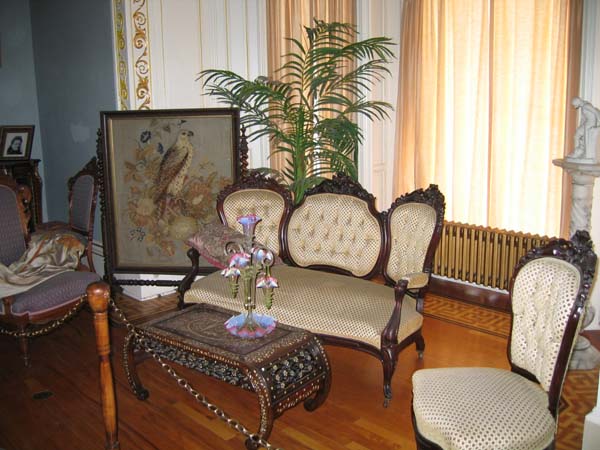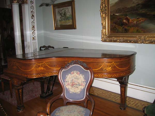 お城に入るとカナダらしく鹿の剥製がありました。 部屋数は多く、ゴージャスな家具、贅を尽くしたシャンデリア、ピアノ、オリエンタルな屏風や陶磁器などが数多くありました。 |