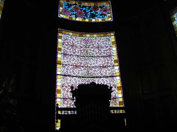 ![]() | 階段の各踊り場ごとにそれぞれステンドガラスがはめ込まれ、パイプオルガンが置いてある階もありました。最上階は天井がドームになっていて、その昔は遙か遠くまで森を見渡せたのでしょう。ロマンティックな作りになっていました。 |