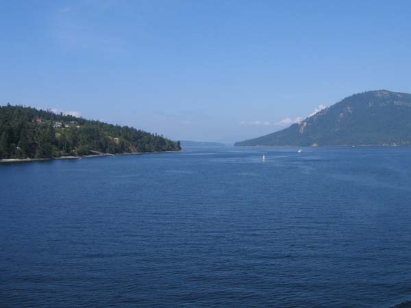 6日目の朝、バンクーバーに戻るフェリーの中から。 ビクトリアを離れがたい思いを抱きながら・・・・。 |