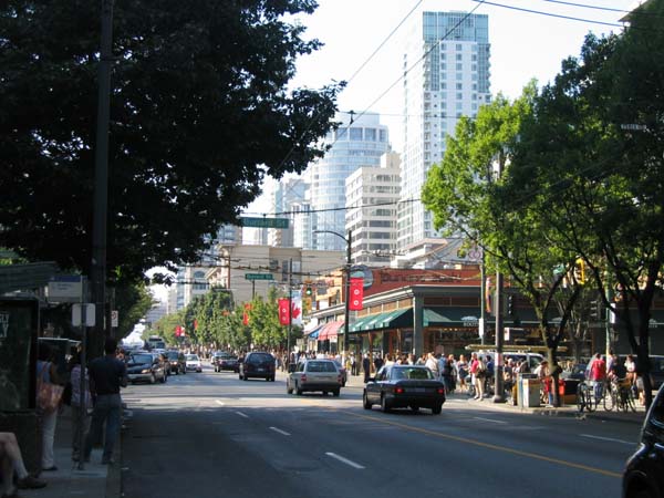 ![]() | バンクーバー、ロブソン通りの街並みです。 |