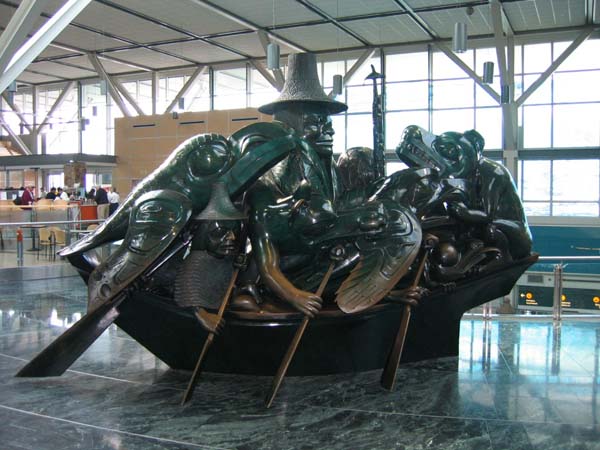 ![]() | 空港の彫刻です。ファーストネーションの間で亀や鷲など、幸福を運んでくると信じられていたそうです。 |