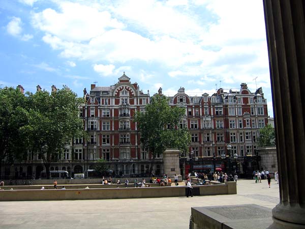 大英博物館の入り口の脇にある休憩所から正面を見るとこんなクラシカルな建物が見えます。