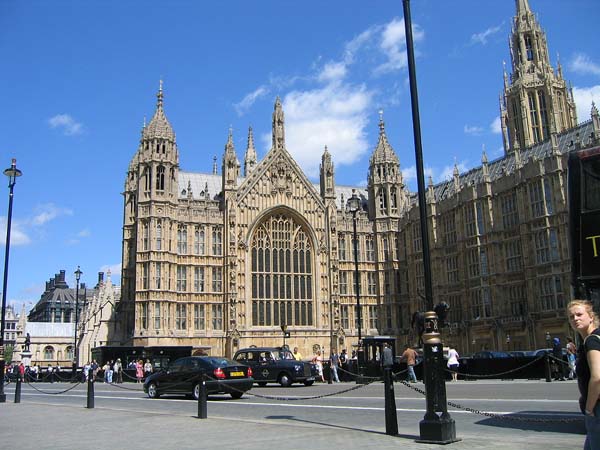 | ビッグベンから続く 国会議事堂です。 (この裏がビッグベン) 正式名は 今でも ウエストミンスター宮殿 です。 |