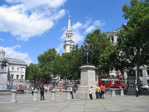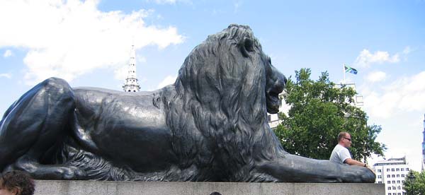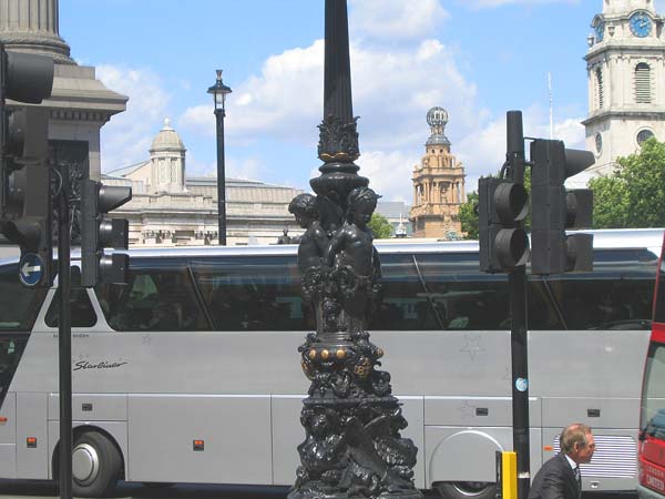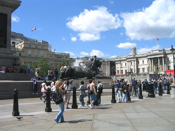 | 左端にネルソン提督の記念碑の台座部分が写っています。 台座だけで55mあるそうです。 台座の周りには4頭のライオンの像があり、 これは三越デパートのライオン像のモデルということです。 |
